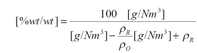 現(xiàn)在,“濃度”[%wt/wtl可以根據(jù)“濃度”[g/Nm]計(jì)算: