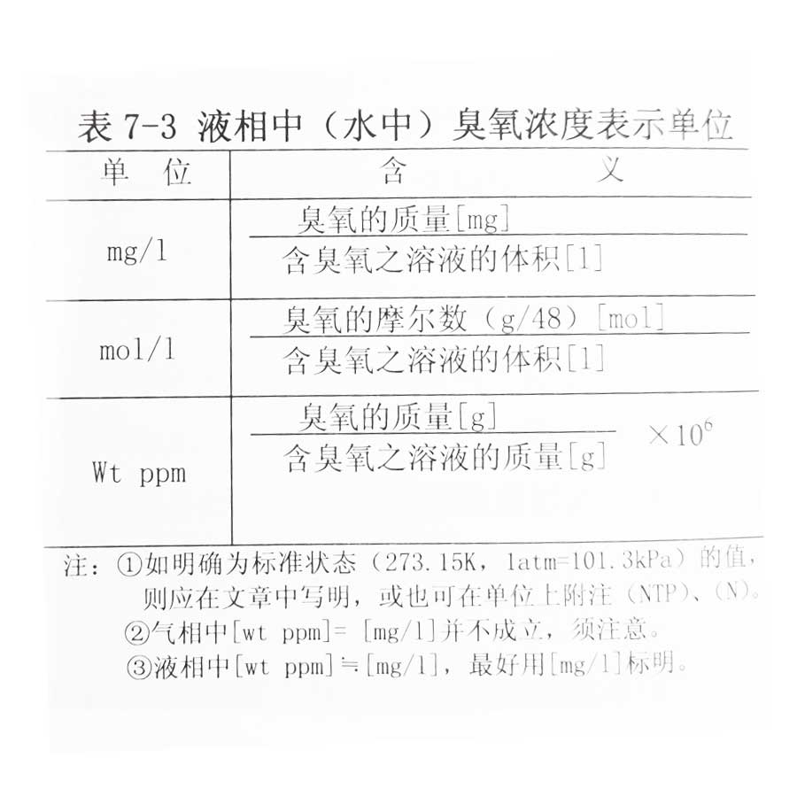液相中臭氧濃度表示單位